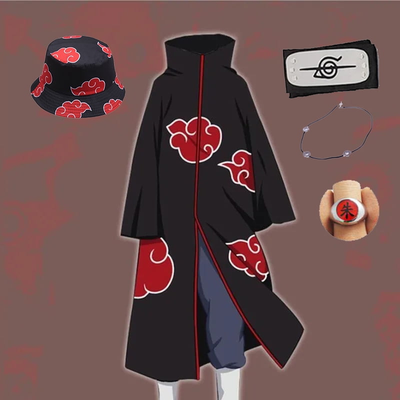 Amazon Com Unisex Anime Cosplay Costumes Akatsuki Cloak Long Robe With Headband Ring Halloween Costume For Men Women Xx Small Black Clothing Shoes Jewelry